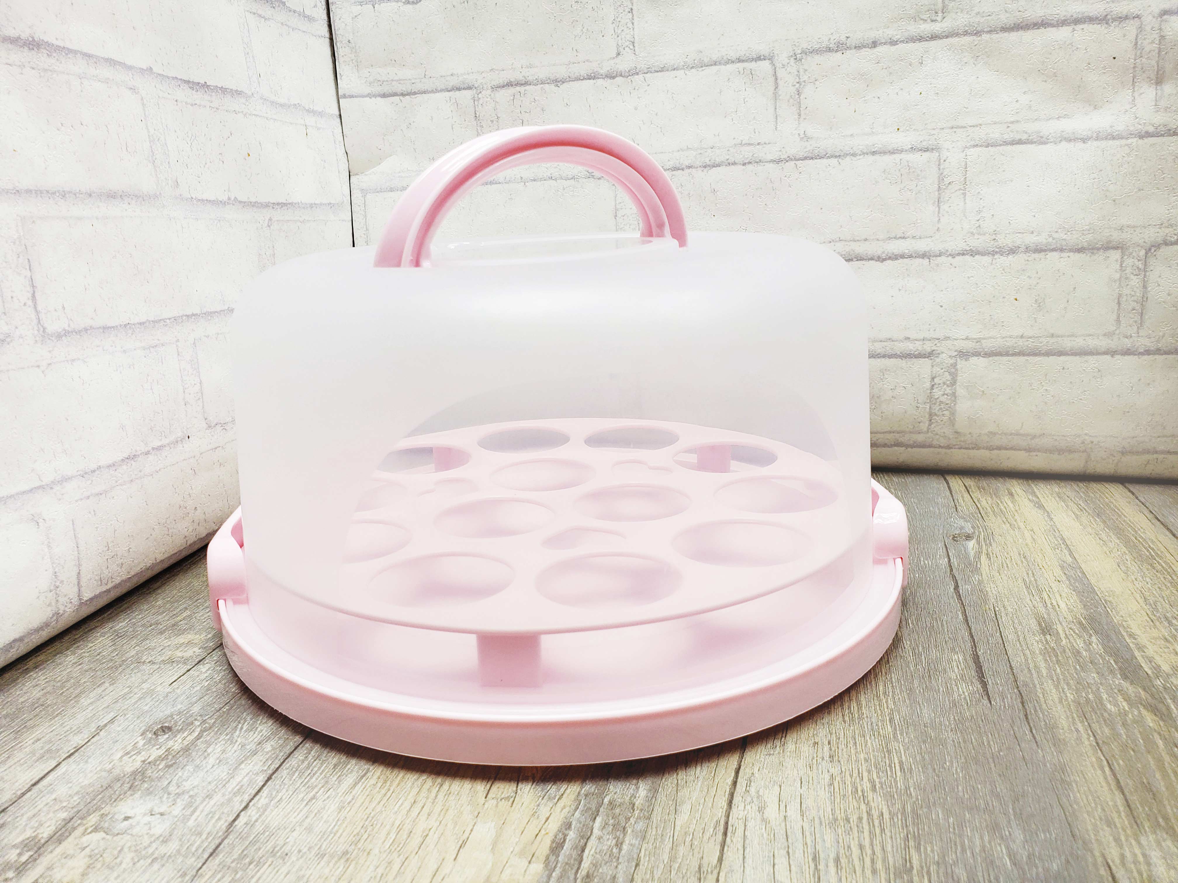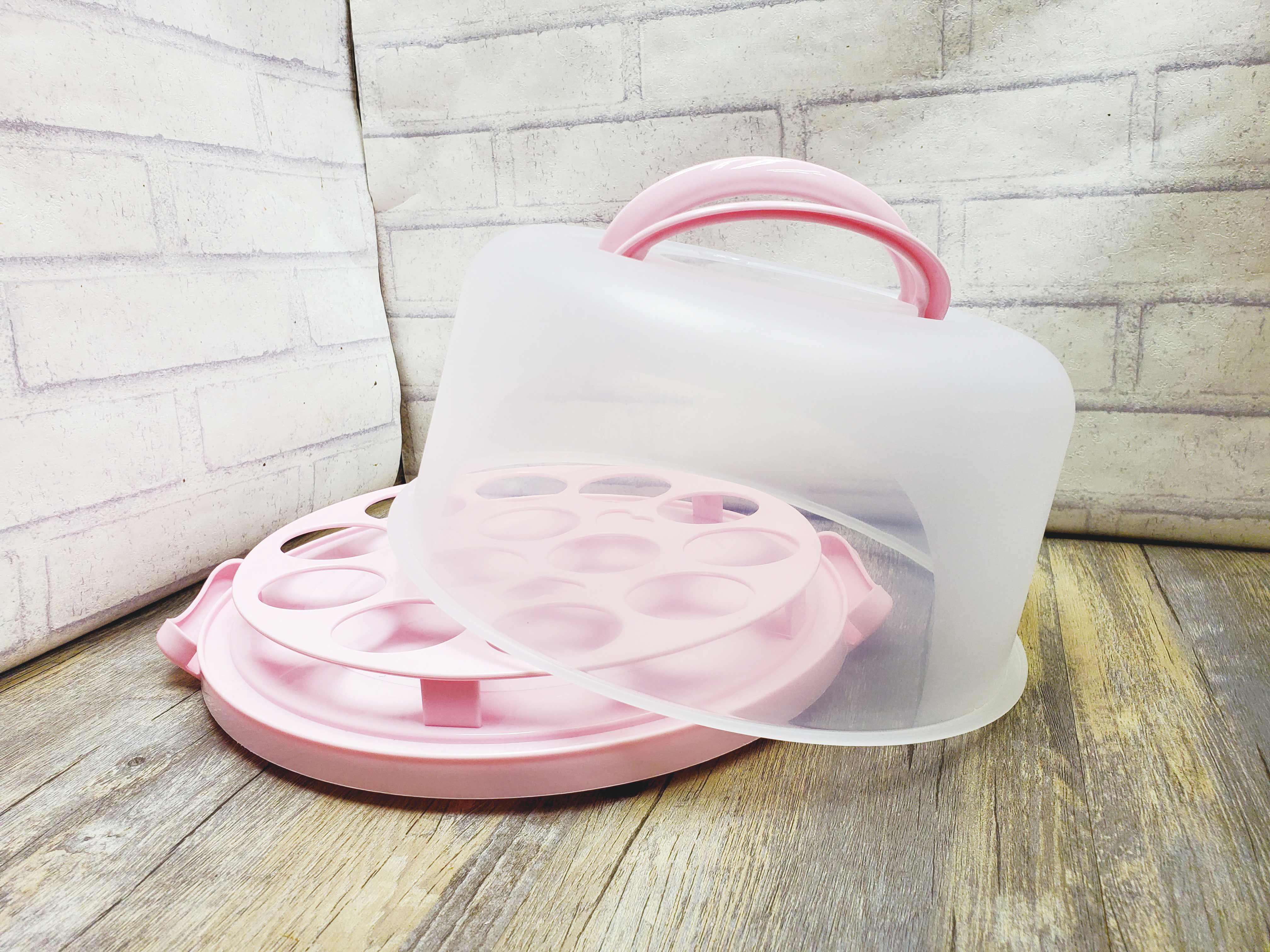 Medium capacity, portable and safe. Made of durable, environmentally friendly, BPA-free PP plastic to keep food healthy, fresh, and delicious. The semi-transparent lid protects cake decorations during transport, two sturdy latches secure the lid, and a top handle makes it easy to carry. Includes a double-layer cupcake rack, holding up to 13-14 cupcakes.