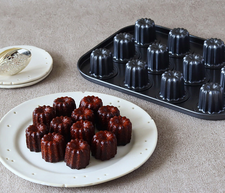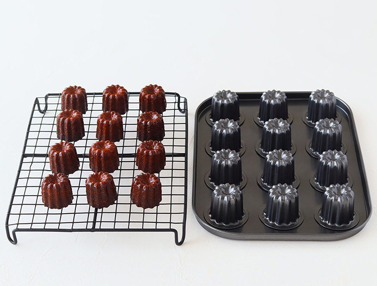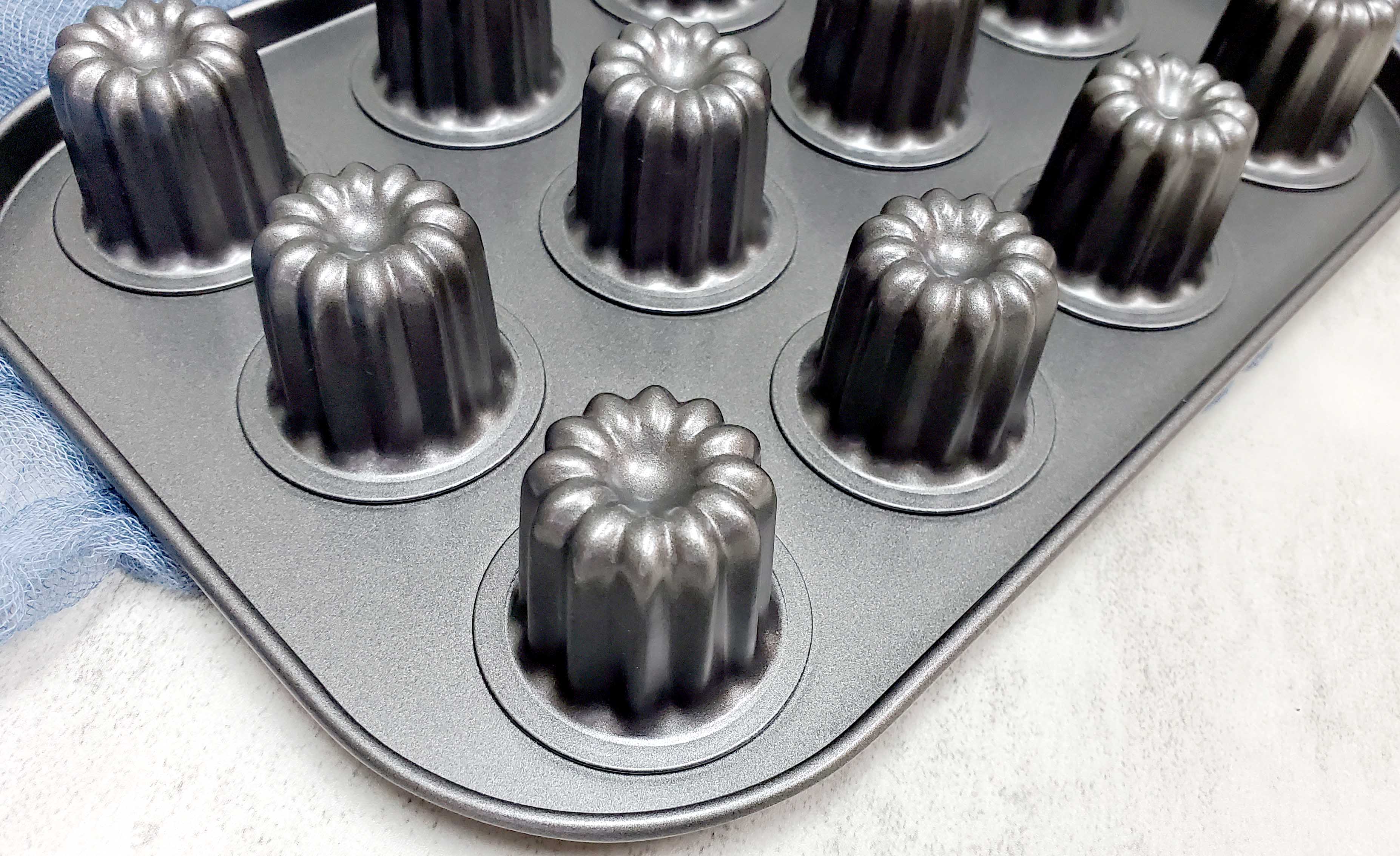 Mini canelé baking pan, made of high-carbon steel with a silicone non-stick coating, ensures even heat distribution, smooth unmolding, and easy cleaning. BPA and PFOA free, it's safe and healthy for baking, making it ideal for mini canels, egg tarts, Yorkshire puddings, and mini chiffon cakes.