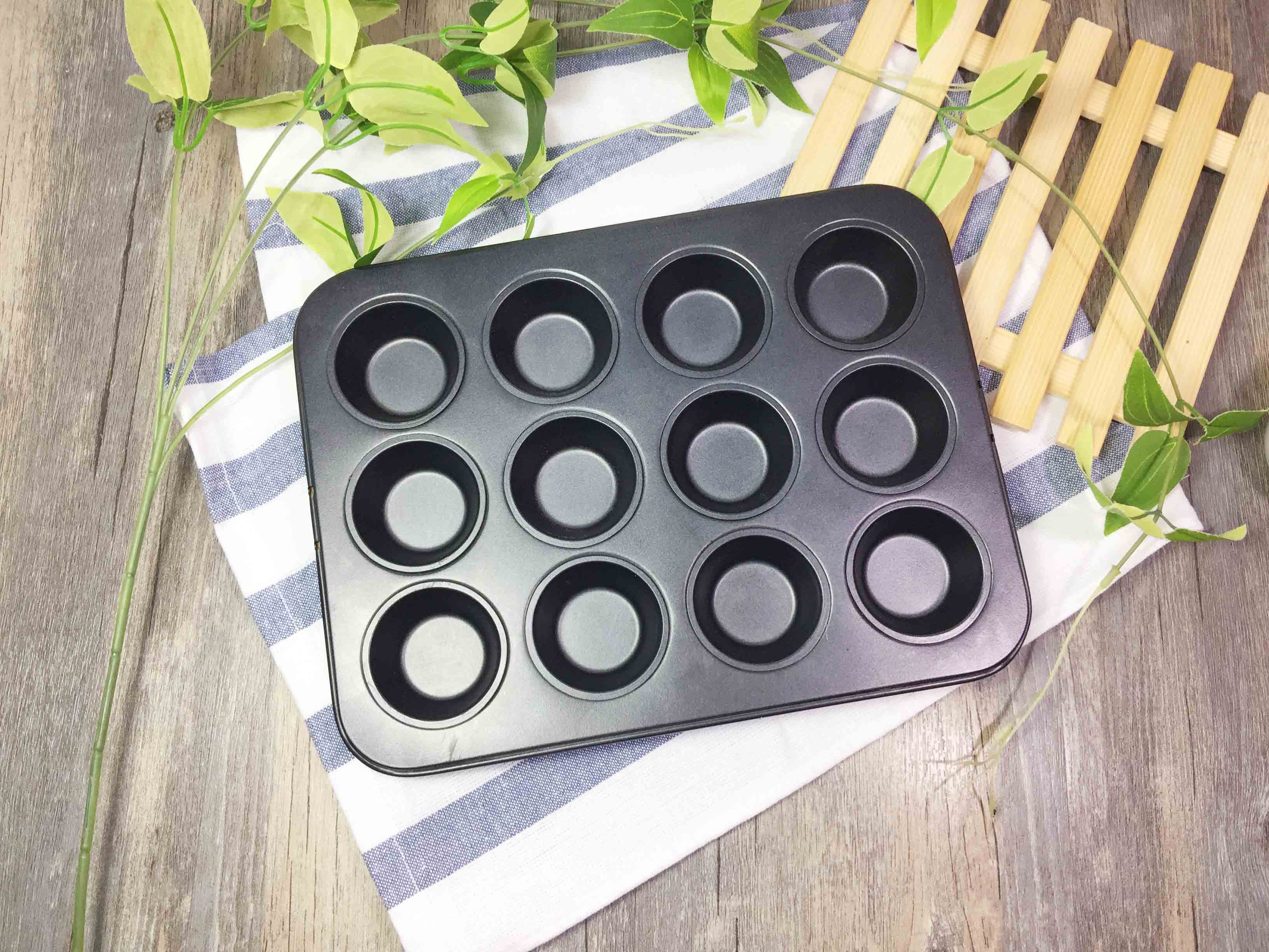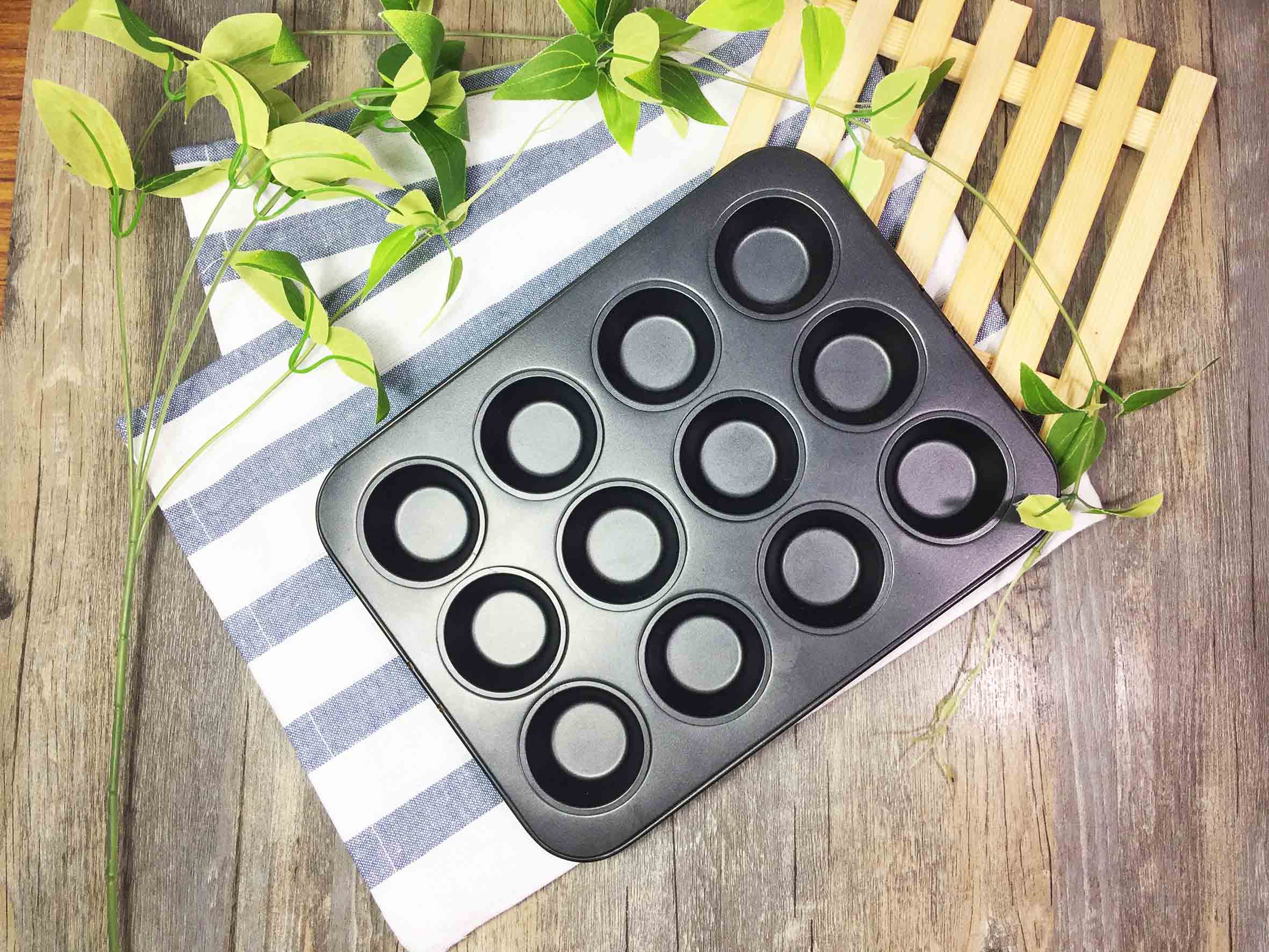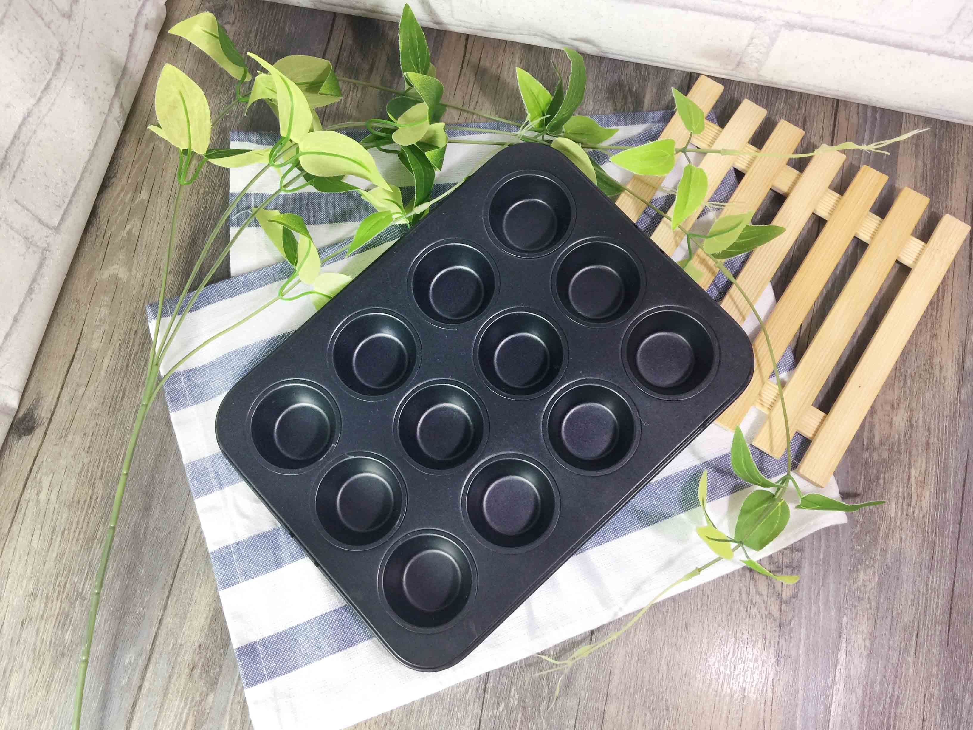 This 12-cavity mini baking pan is made of high-quality carbon steel, ensuring excellent craftsmanship, durability, even heating, and resistance to deformation. The surface is coated with a silicone non-stick coating for easy unmolding and cleaning. It's suitable for making a variety of desserts and pastries, including cupcakes, brownies, Yorkshire fritters, chocolate coffee smoothies, mini pie crusts, cookies, shaped cakes, and chicken pies.Product Features