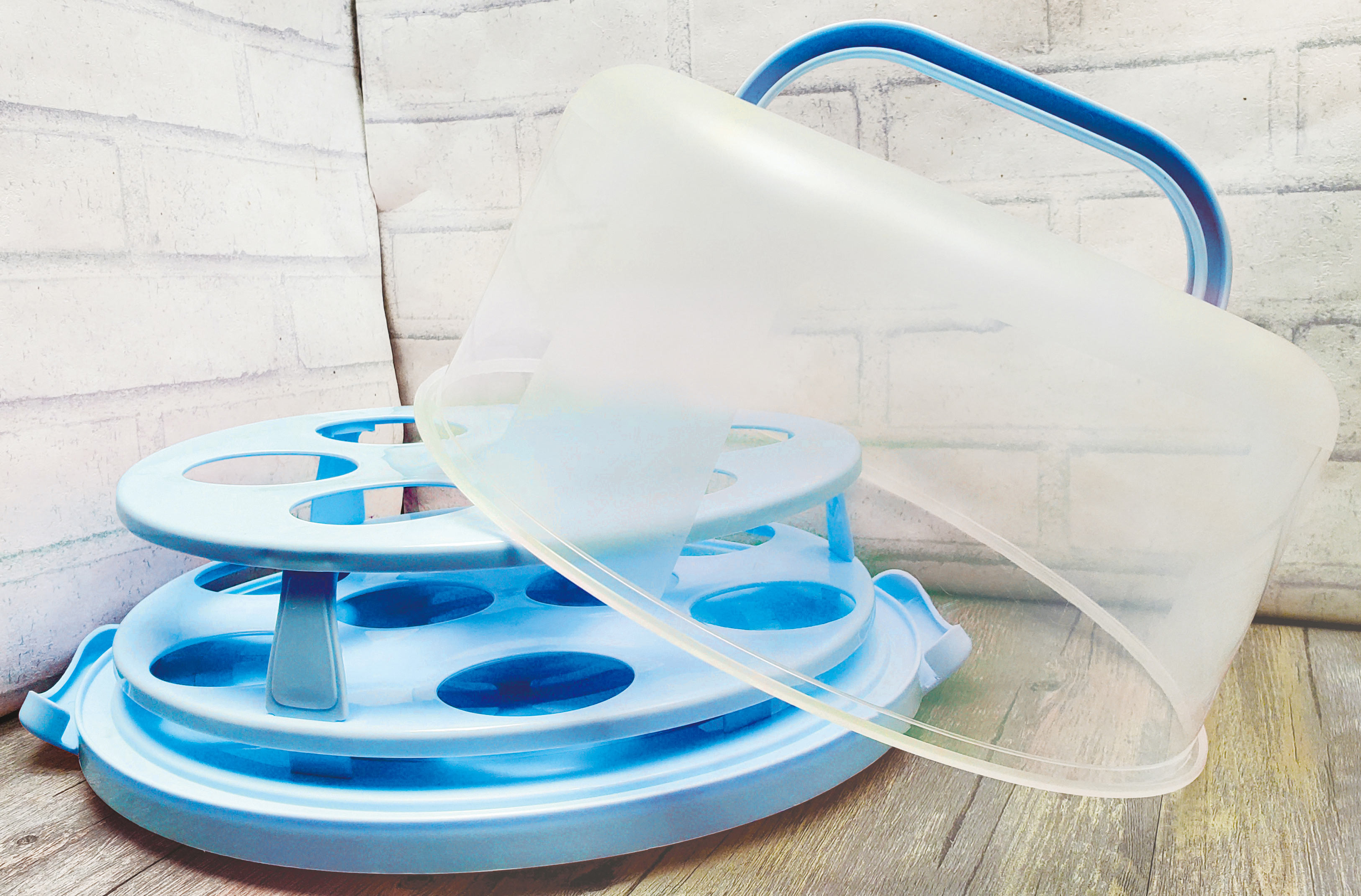 - Includes a double-layer cupcake rack, holding up to 14 cupcakes
