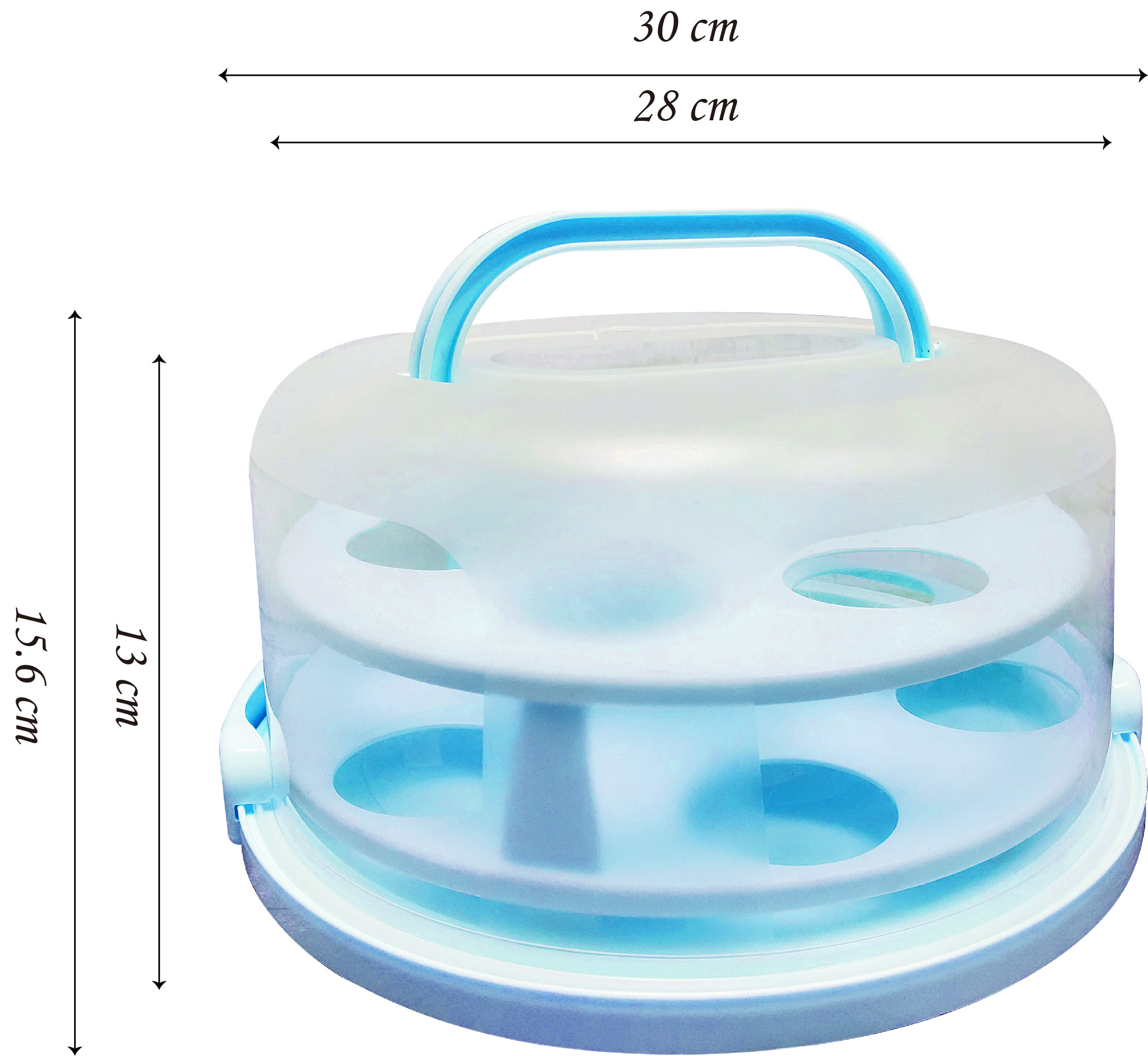 Large Capacity Design, Safe and ConvenientMade of durable, environmentally friendly, BPA-free PP plastic to keep food healthy, fresh, and delicious. The semi-transparent lid allows a clear view of the cake decorations, two sturdy latches secure the lid, and a top handle makes it easy to carry. Includes a double-layer cupcake rack, holding up to 14 cupcakes.